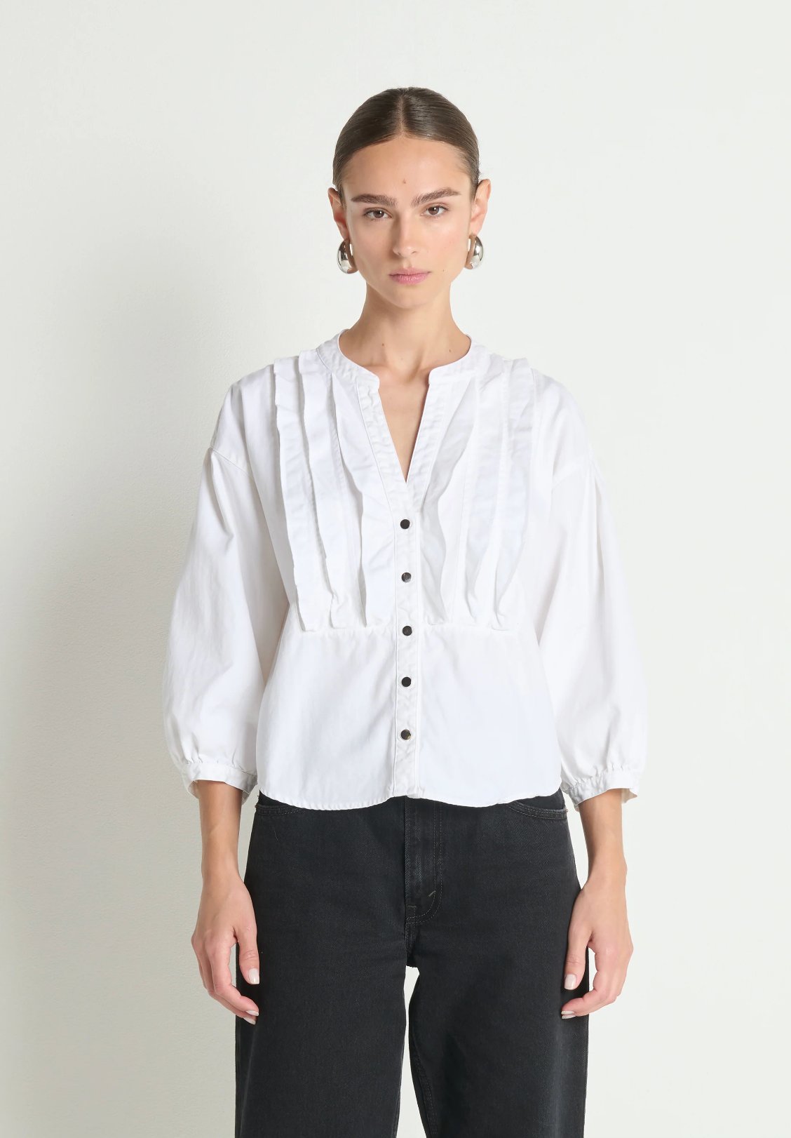 AMELIA RUFFLE SHIRT PORCELAIN