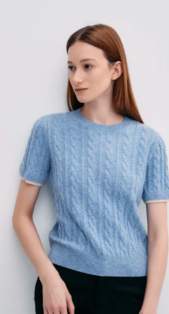 LAYERED LOOK CABLE KNIT SHORT SLEEVE SWEATER