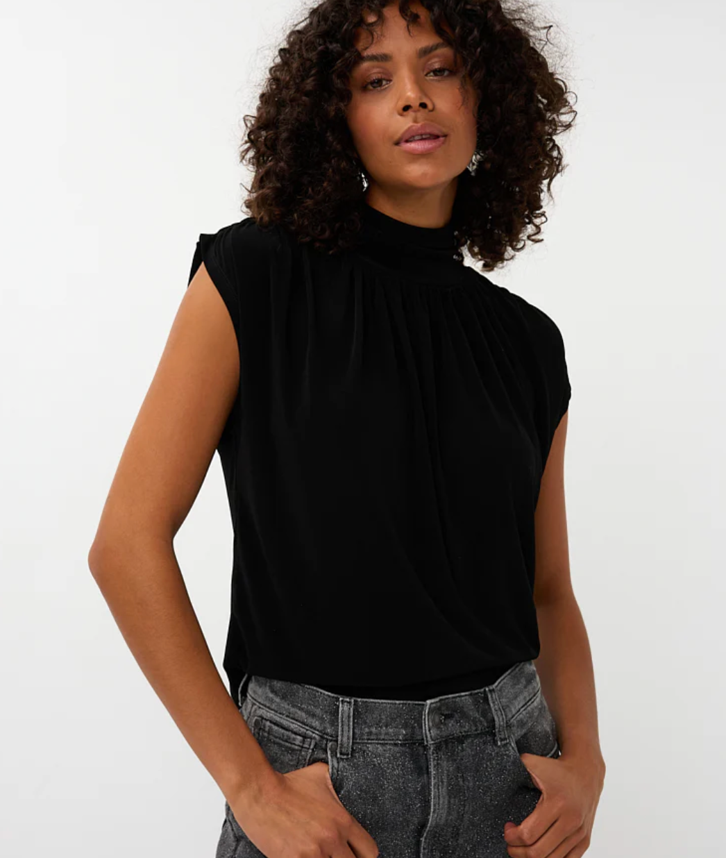 MOCK NECK GATHERED TOP BLACK