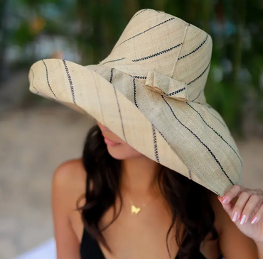 Monica Wide Brim Pinstripe Packable Straw Sun Hat